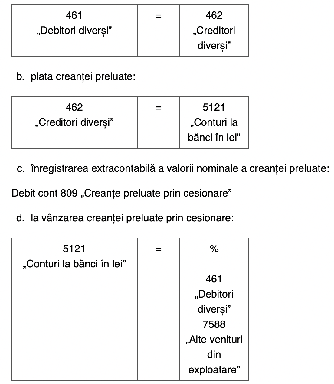 a)inregistrarea contabila a preluarii creantei cesionate: