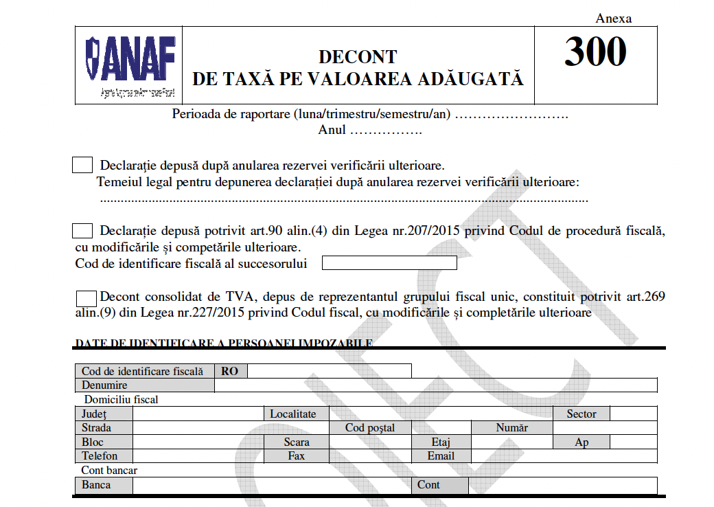 Avand in vedere aceste modificari, Directia generala de legislatie fiscala si reglementari vamale si contabile din cadrul Ministerului Finantelor, prin adresa nr.740876/14.06.2023, a solicitat introducerea in formularul (300) "Decont de taxa pe valoarea adaugata" a doua noi randuri, in care persoanele impozabile sa raporteze, distinct fata de alte operatiuni scutite de taxa pe valoarea adaugata, informatii privind operatiunile scutite potrivit noilor prevederi legale.