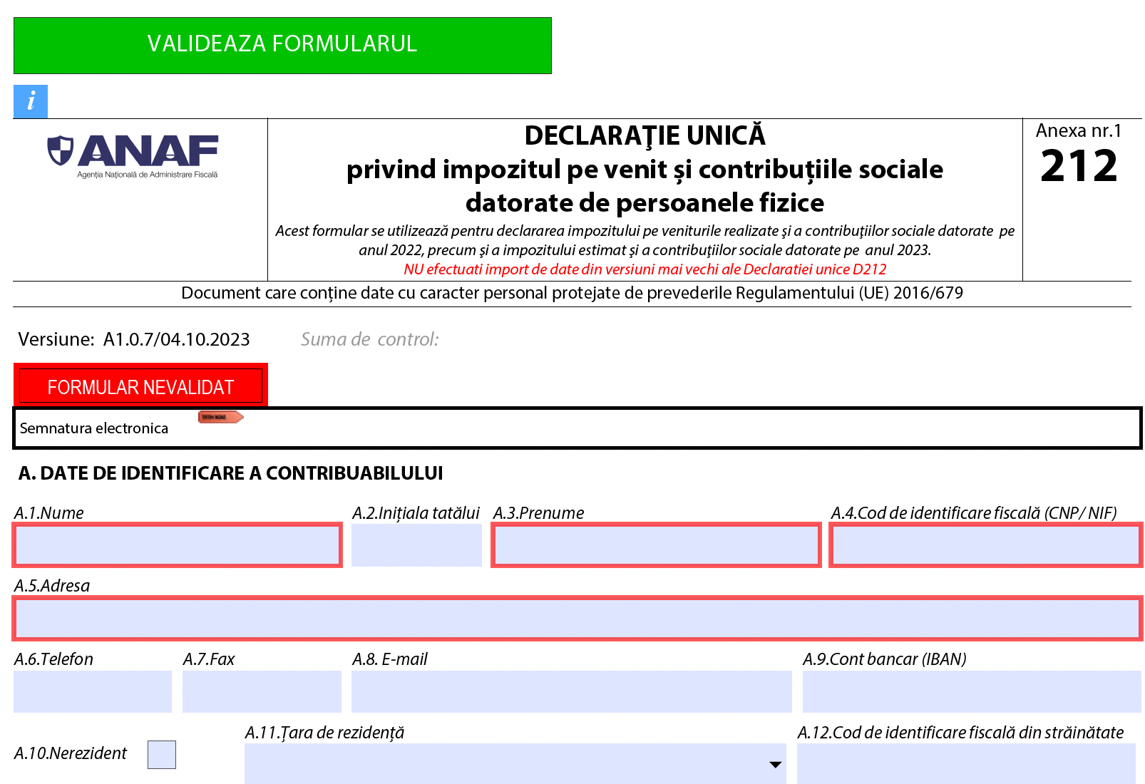 Agentia Nationala de Administrare Fiscala a actualizat recent PDF-ul inteligent al Declaratiei Unice. A fost modificat formularul pentru a putea fi introduse date despre CASS in urma majorarii salariului minim la suma de 3.300 lei.
