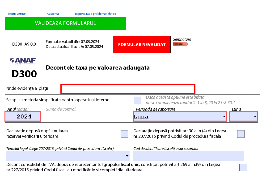 Administratia Judeteana a Finantelor Publice Vrancea aduce in atentia contribuabililor ca incepand cu obligatiile lunii mai 2024, cu termen de declarare 25 iunie 2024, se va utiliza un nou formular 300 Decont de taxa pe valoarea adaugata.